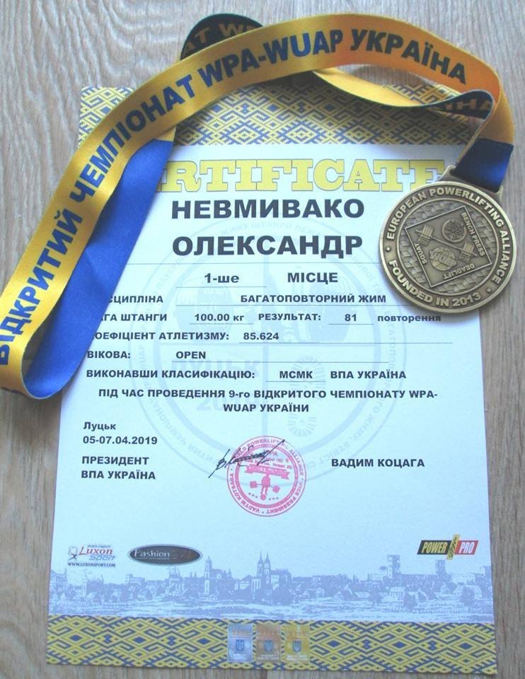Олександр завоював 1 місце, піднявши штангу 100 кг 81 раз, та став абсолютним переможцем. Здобувши перемогу, спортсмен пройшов відбір на чемпіонат світу, який відбудеться вже у травні у Луцьку.