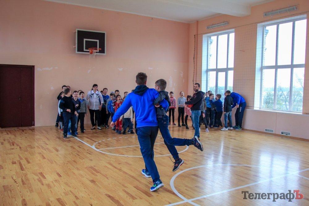 П’ятеро футболістів залучили, як хлопців так і дівчат, до естафети та пограли у футбол. Дітей розділили між гравцями: Андрієм Олійником, Костянтином Чернієм, Сергієм Ченбаєм, Сергієм Вовкодавом та Владиславом Піскуном. Школярі з радістю бігли до футболістів та навіть обіймали гравців «Кременя». Незабутні емоції залишилися як в школярів, так і в спортсменів.