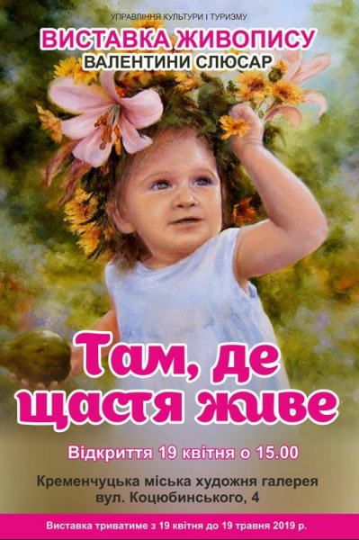 - «Там, де щастя живе» – виставка живопису художниці, педагога, журналістки Валентини Слюсар До колекції картин увійшли пейзажі місцевих краєвидів та портрети.