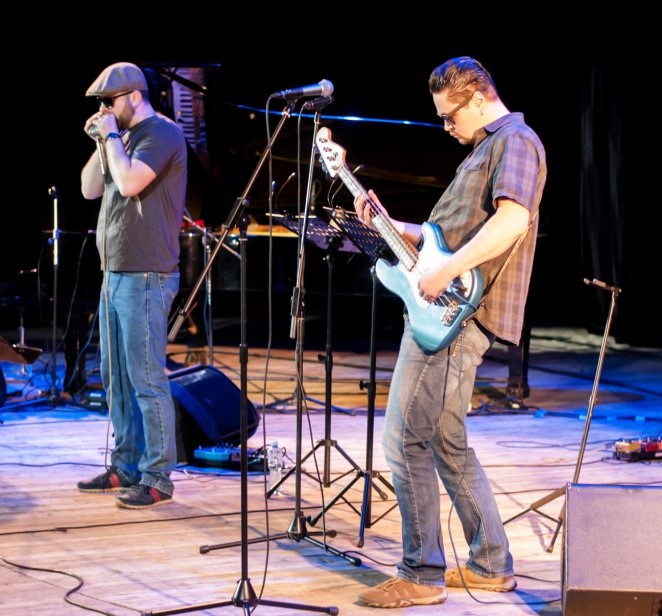 С Константином Колесниченко, исполнителем на блюзовой арфе (так иногда называют губную гармонику), удалось поговорить перед концертом: