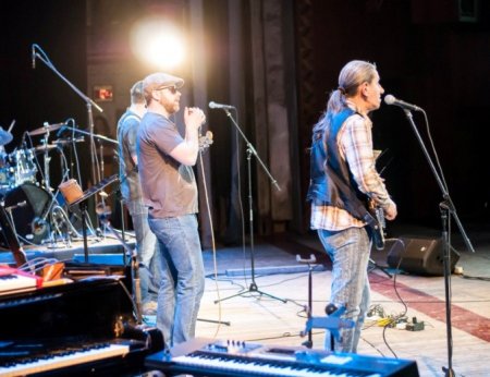 После драйвового блюза бесшумное трио Виталия Ткачука погрузило всех в другую, параллельную реальность, откуда не хочется возвращаться. Пульсирующие звуки акустической гитары, проникающая музыка… и тысячный зал просто замер, слегка покачиваясь на волнах…