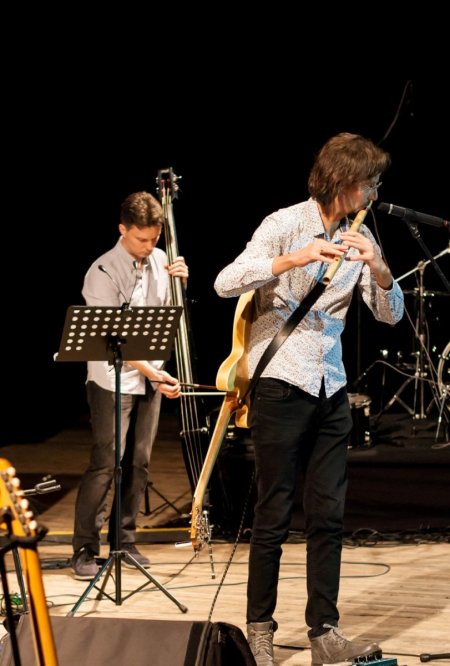 Отличительной особенностью этого фестиваля стало три премьеры, а именно, впервые представлены авторская программа гитариста – романтика Виталия Ткачука, проект одесских музыкантов «Киноджаз» и новый альбом Маттео Сансонетто (на фото).