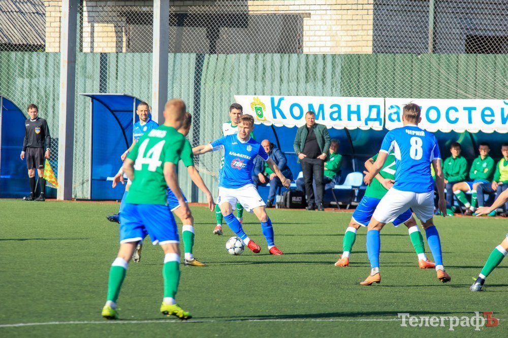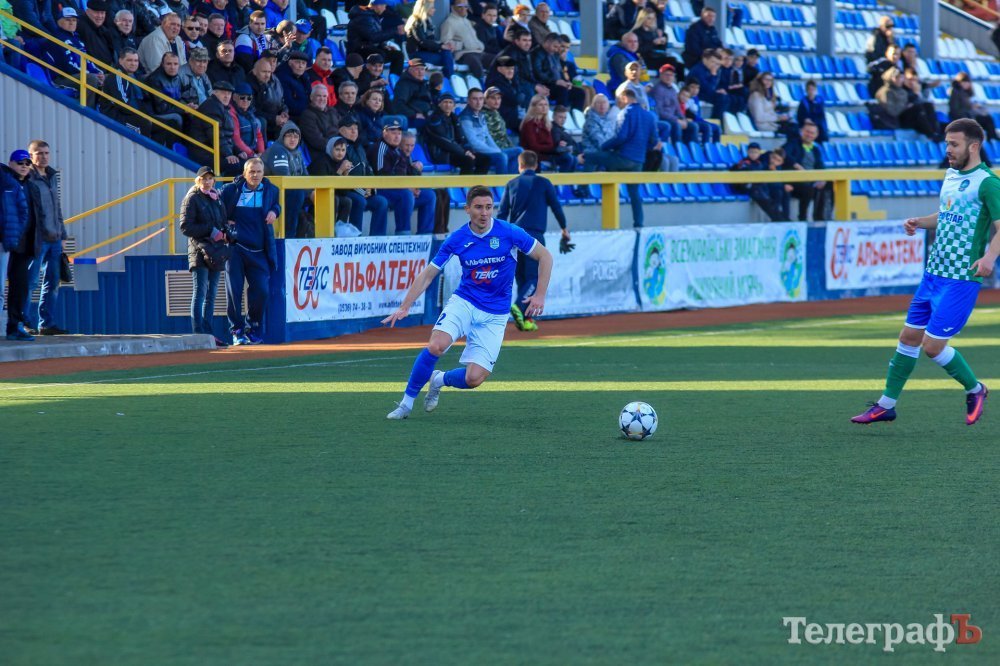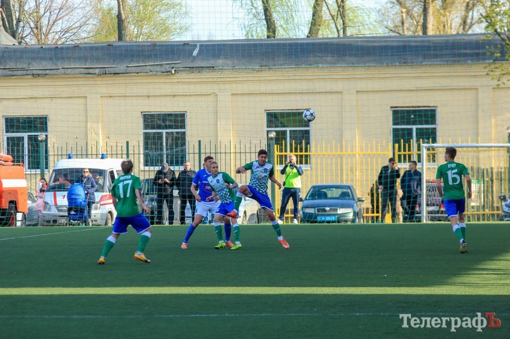 Щодо самої гри першими атаку розпочали херсонці – Барладим пробив у ворота «Кременя», проте надійно зіграв голкіпер кременчужан Котляров. Господарі відповіли прицільними ударами Сафонова, Сидоренка, Мурашова та Масалова. В середині першого тайму хороший момент у Мартяна, який після пасу Гливого вийшов на удар, але не зміг скористатися шансом відкрити рахунок. До перерви Сергій Вовкодав після штрафного головою відправляв м’яч у дальній кут воріт – тут команду гостей підстрахував Меженський.
