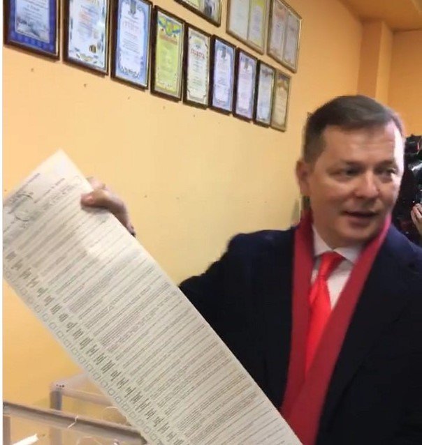 Зеленский не первым показал фокус с избирательным бюллетенем. В первом туре выборов это сделал Ляшко – именно он первым продемонстрировал журналистам свой бюллетень с отметкой за кандидата Ляшко. И таким образом тоже нарушил ст. 7 ЗУ «Про вибори президента України».