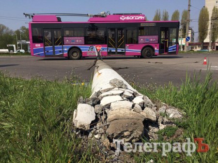 У Кременчуці неподалік зупинки «проспект Полтавський» впала електроопора. У результаті цього обірвалася тролейбусна контактна мережа, тож рух «рогатого» транспорту ускладнений.