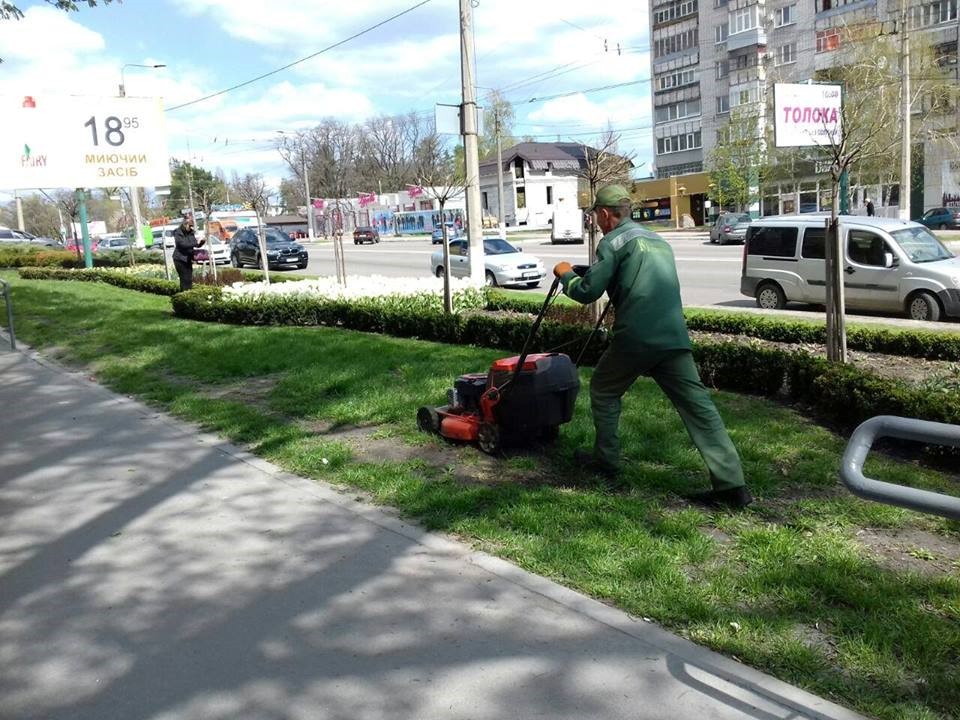 Вчора, 23 квітня, бригади косили газони у сквері ім. Олега Бабаєва, а також вздовж автомагістралей міста.