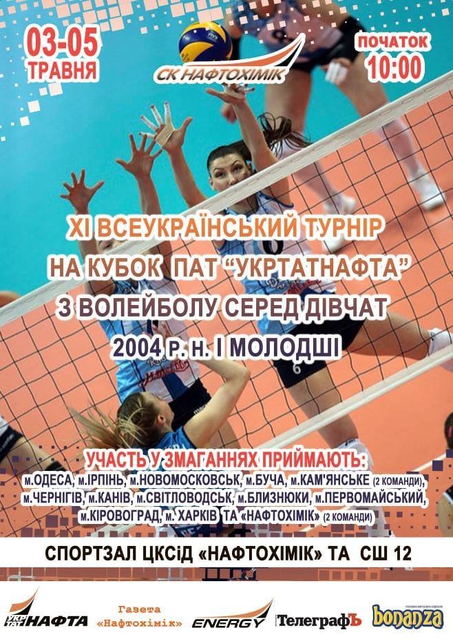 3-го травня у Кременчуці стартує ХІ Всеукраїнський турнір на Кубок ПАТ «Укртатнафта» з волейболу. Змагання відбудуться серед дівчат 2004 року народження й молодші. Турнір проходитиме протягом трьох днів до 5 травня на двох майданчиках: спортзалі ЦКСіД «Нафтохімік» та школі №12.