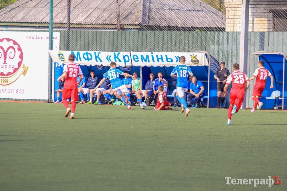«Кремінь» на перших секундах міг відкрити рахунок – удар Козлова відрікошетив від Капіленко, проте це лише відстрочило взяття воріт. Виконувати кутовий пішов Богдан Бичков – скидка на Костянтина Чернія й Дмитро Ентін з воротарської лінії відкрив рахунок у матчі. Кременчужани набирали обертів. Хороший момент був у Влада Сидоренка, проте він пробив повз ворота. Друге взяття воріт зафіксували на 14 хвилині, коли Олександр Сафонов отримав діагональну передачу від Артема Козлова й потужним ударом пробив у дальню дев’ятку. Гол красень збільшив перевагу кременчужан.