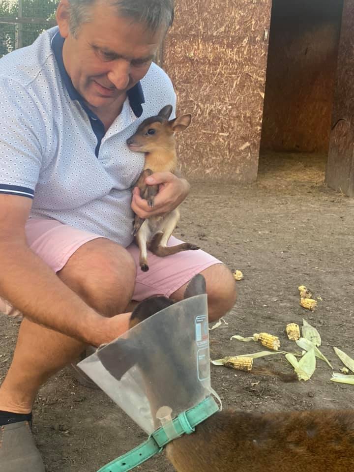 Сьогодні, 1 травня, маля кенгуру, яке живе в розпліднику «Гарді» виліз з сумки. Дитинча ще боїться, тому при приближенні людей ниряє до сумки мами Іванки.