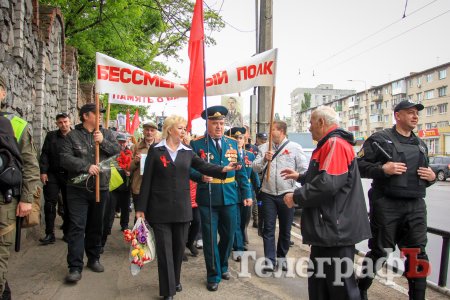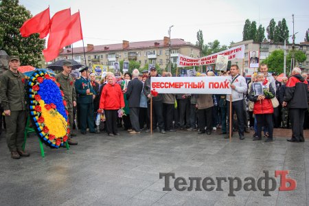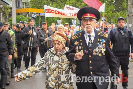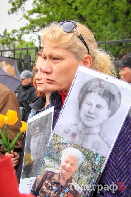 Сьогодні зранку, 9 травня, у Кременчуці пройшла акція до Дня перемоги - кременчужани пройшлися з портретами рідних, які воювали у Другій світовій війні. У традиційній ході, яка проходить від скверу Соснового до меморіалу "Вічно живим" взяли участь близько півсотні кременчужан й стільки ж правоохоронців.
