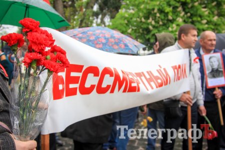 *"Безсмертний полк" - спочатку громадська організація, яка була створена в 2011 році в Томську (РФ). Тоді з'явилася ідея прикріплювати портрети ветеранів до держаків і носити їх під час ходу. Акція стала використовуватися в пропагандистських цілях, в тому числі в гібридної війні РФ проти України.