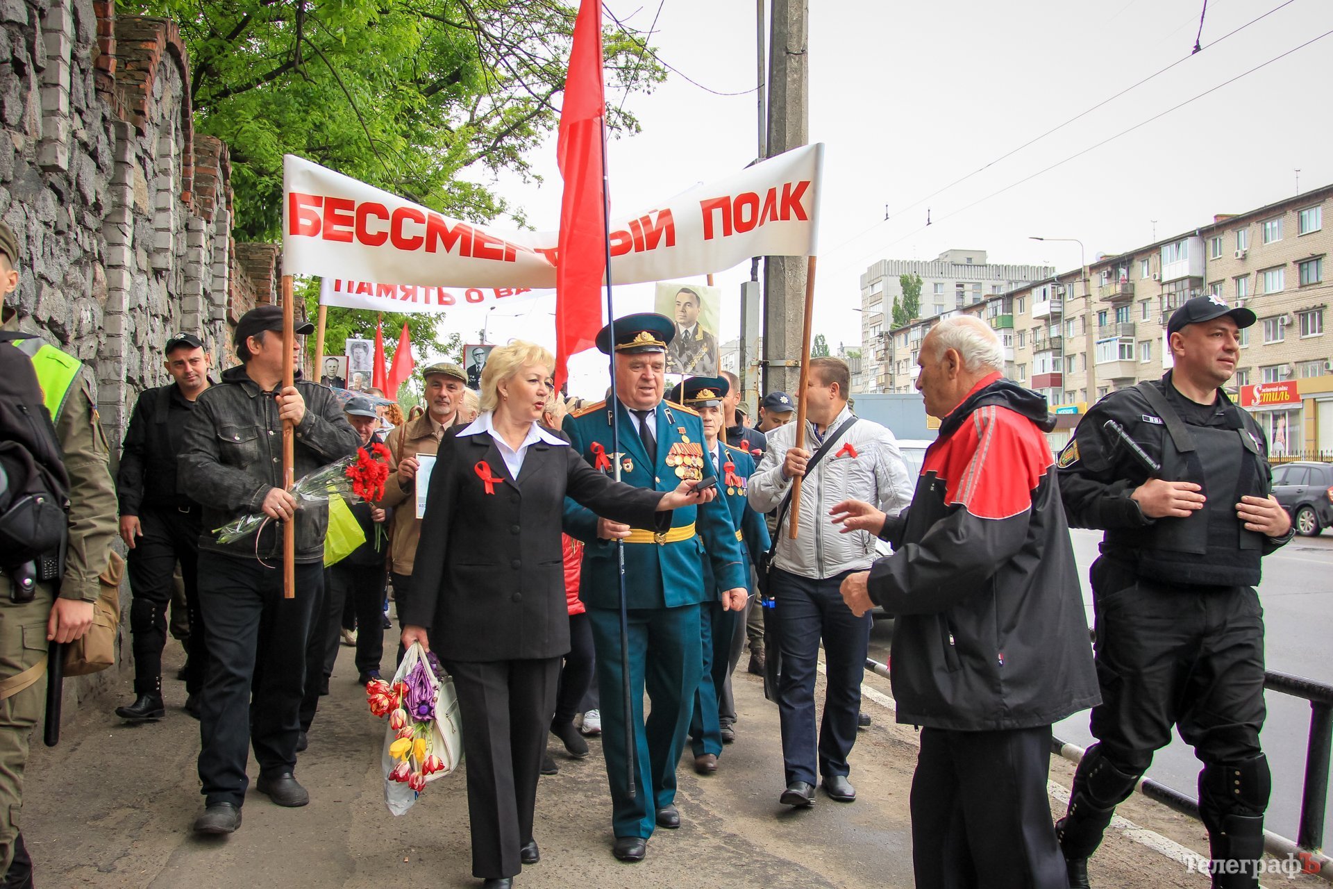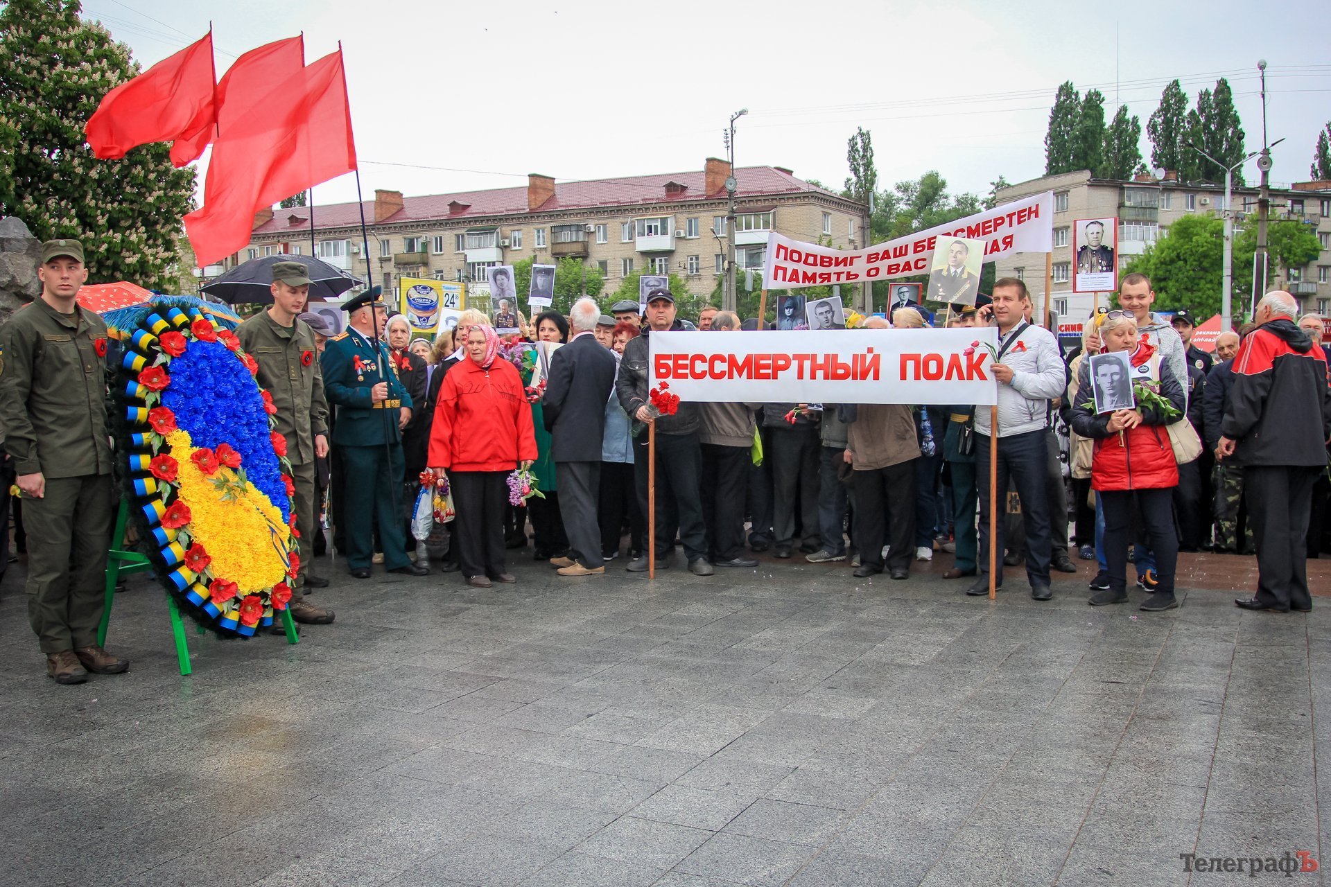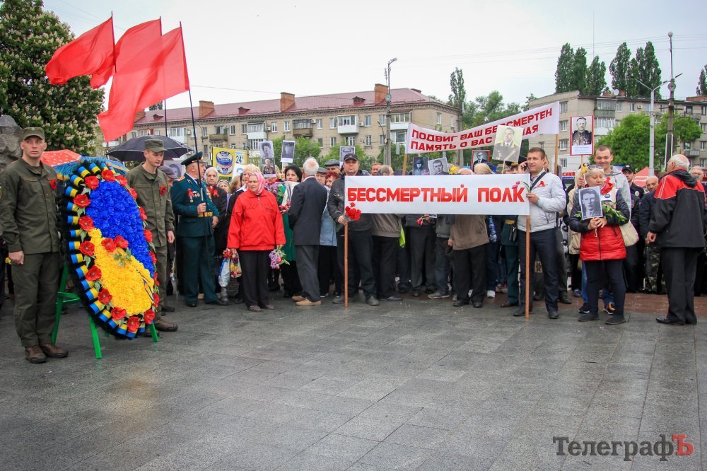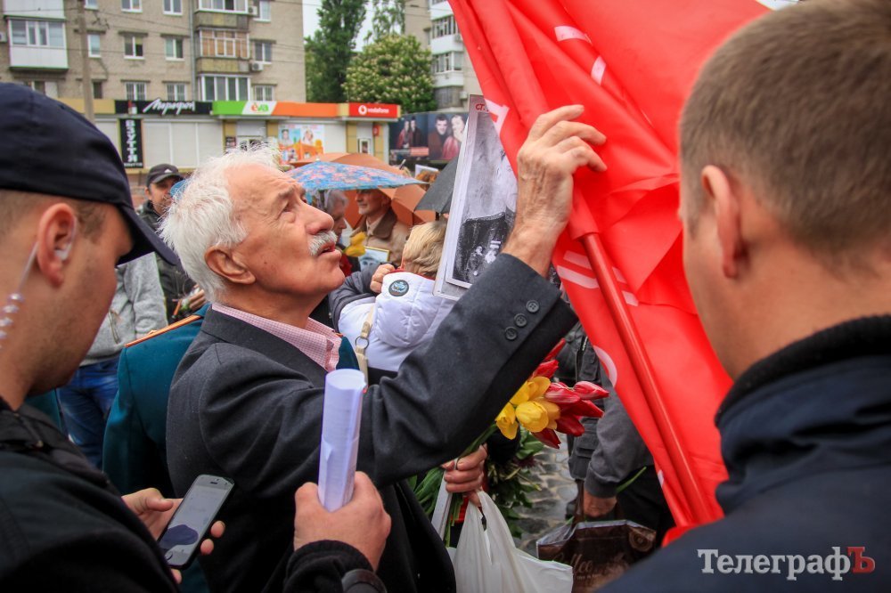 Акція пройшла мирно без застосування забороненої символіки. Тільки в руках присутніх були червоні стрічки та червоний стяг. У руках кременчужани тримали портрети своїх рідних, які воювали у Другій світовій війні.