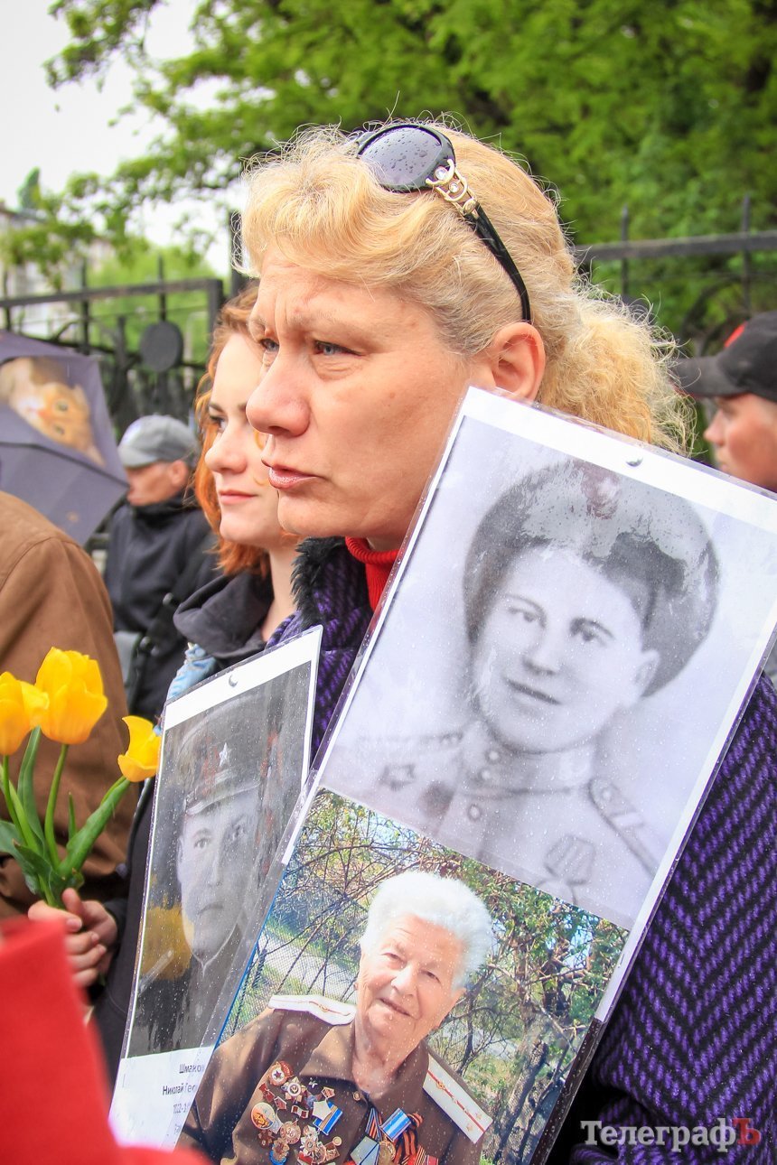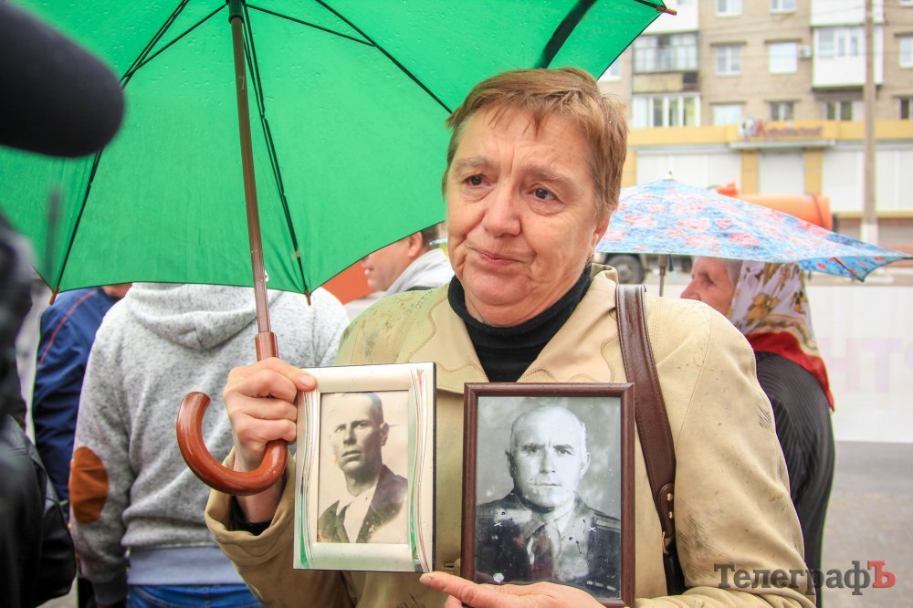 Сьогодні зранку, 9 травня, у Кременчуці пройшла акція до Дня перемоги – кременчужани пройшлися з портретами рідних, які воювали у Другій світовій війні. У традиційній ході, яка проходить від скверу Соснового до меморіалу «Вічно живим» взяли участь близько півсотні кременчужан й стільки ж правоохоронців.