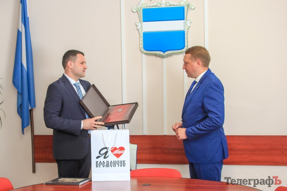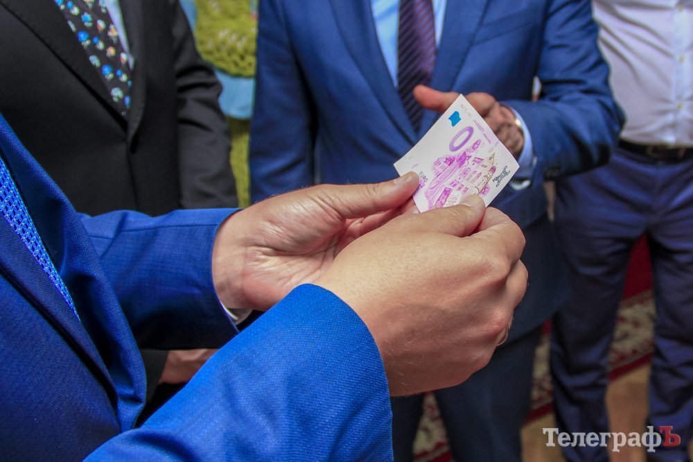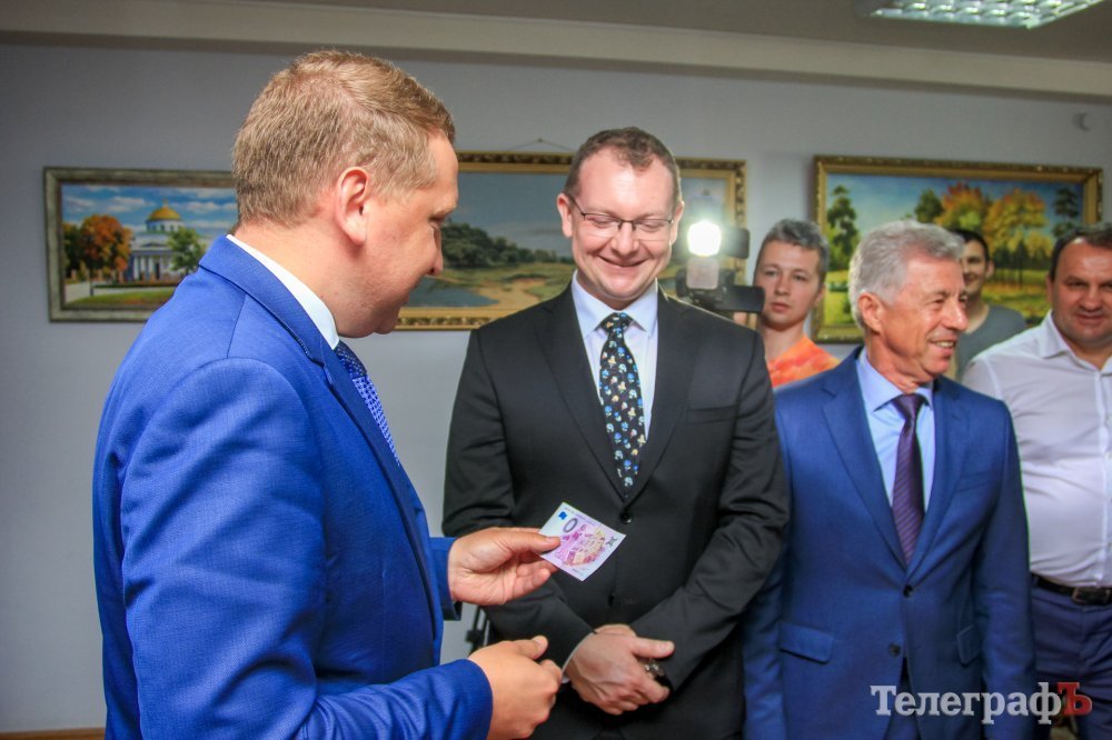 Потім міський голова провів гостей у музей досягнень Кременчука, а вони у свою чергу жартома презентували йому купюру євро номіналом 0, виготовлену у словацькому університеті.