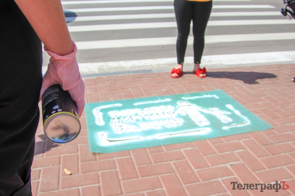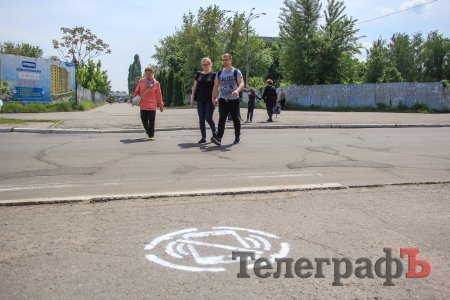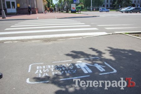 Розпочали на перехресті вулиць Соборної та Перемоги, на пішохідних переходах біля магазину «Роксолана» та Кременчуцького краєзнавчого музею. І недарма - адже тут активний рух автотранспорту, немає світлофорів та великий потік кременчужан, які прямують на прогулянку до парку, серед яких батьки з колясками, маленькі діти, любителі велоспорту. Подібна трафаретна розмітка з'явиться у 10 найнебезпечніших дорожніх зонах Кременчука, які були обрані після аналізу аварійності - це багатолюдні місця або місця з навчальними закладами.