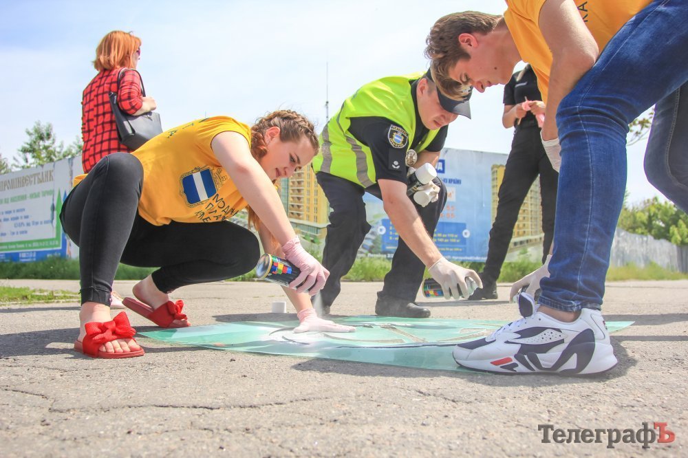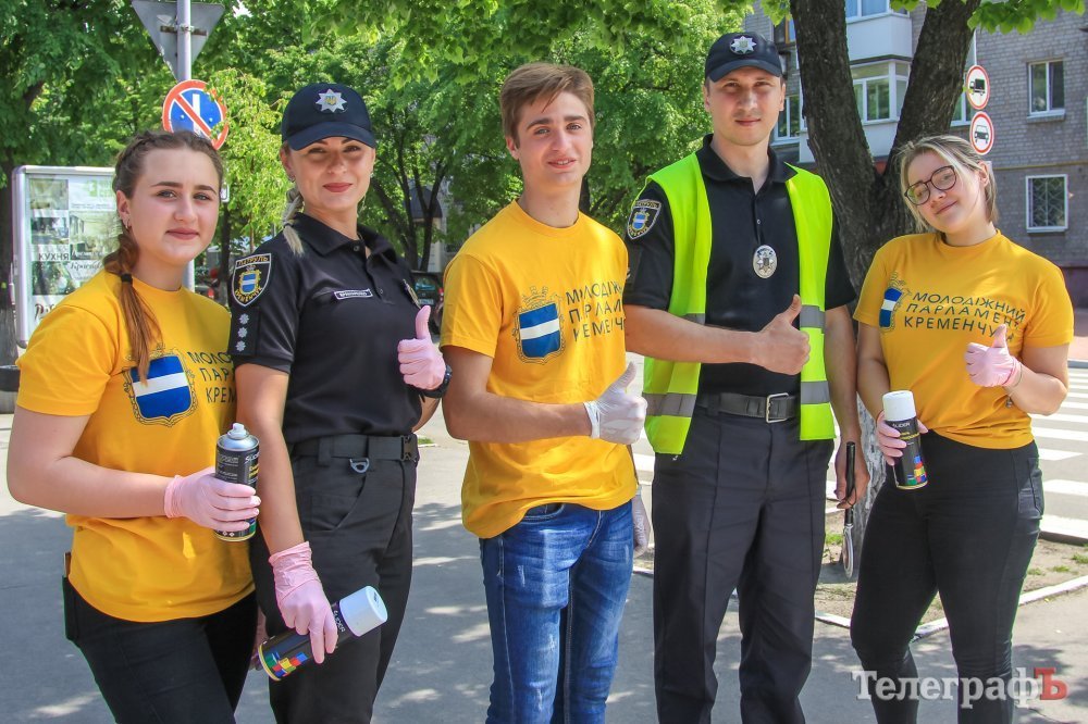 Сьогодні, 15 травня, стартувала акція «Відповідальний пішохід», яку провели працівники патрульної поліції спільно з активною молоддю Молодіжного парламенту Кременчука. Вони закликали кременчужан-пішоходів правильно поводитися на дорозі та у рамках заходу за допомогою балончиків з фарбою нанесли спеціальну трафаретну розмітку на тротуарах перед пішохідними переходами.