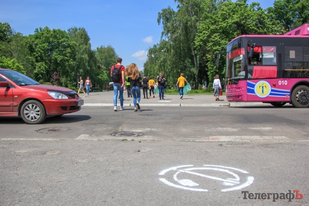 Розпочали на перехресті вулиць Соборної та Перемоги, на пішохідних переходах біля магазину «Роксолана» та Кременчуцького краєзнавчого музею. І недарма – адже тут активний рух автотранспорту, немає світлофорів та великий потік кременчужан, які прямують на прогулянку до парку, серед яких батьки з колясками, маленькі діти, любителі велоспорту. Подібна трафаретна розмітка з’явиться у 10 найнебезпечніших дорожніх зонах Кременчука, які були обрані після аналізу аварійності – це багатолюдні місця або місця з навчальними закладами.