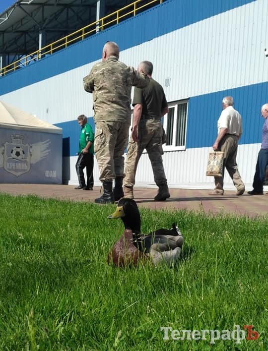 А на вході на газоні вболівальників зустрічала качка.