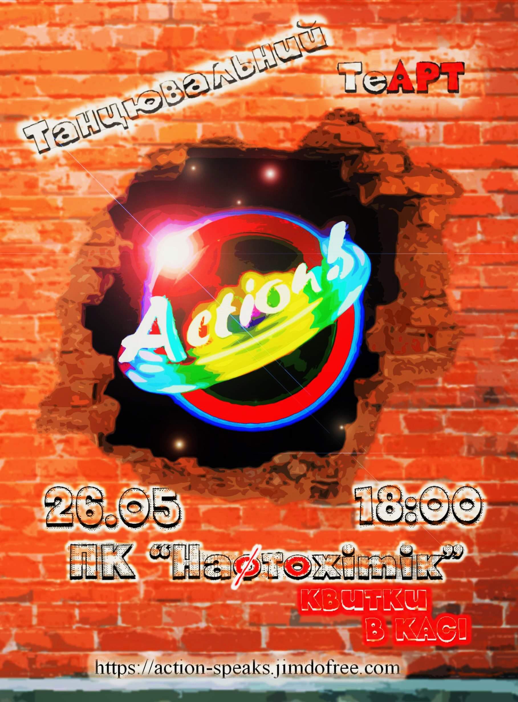 Що: виступ танцювального ТеАрту ACTION! Де: палац культури «Нафтохімік». Коли: 26 травня, 18:00 Квитки у касах палацу.