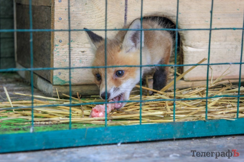 Сотрудники парка кормят лисят куриным мясом, также добавляют в рацион творог, смешанный со сметаной и яйцами. Виталий Дедюрин улыбается: