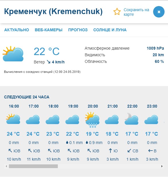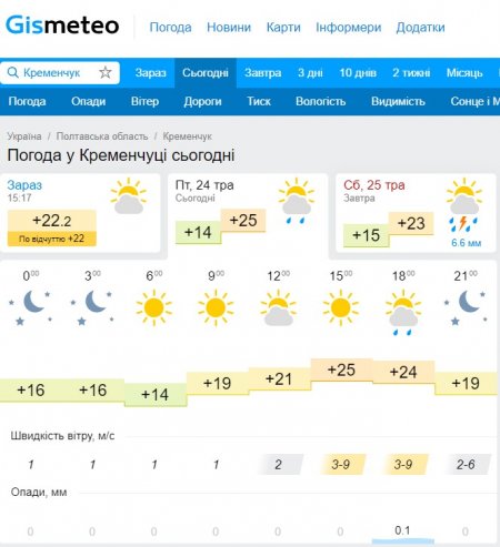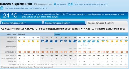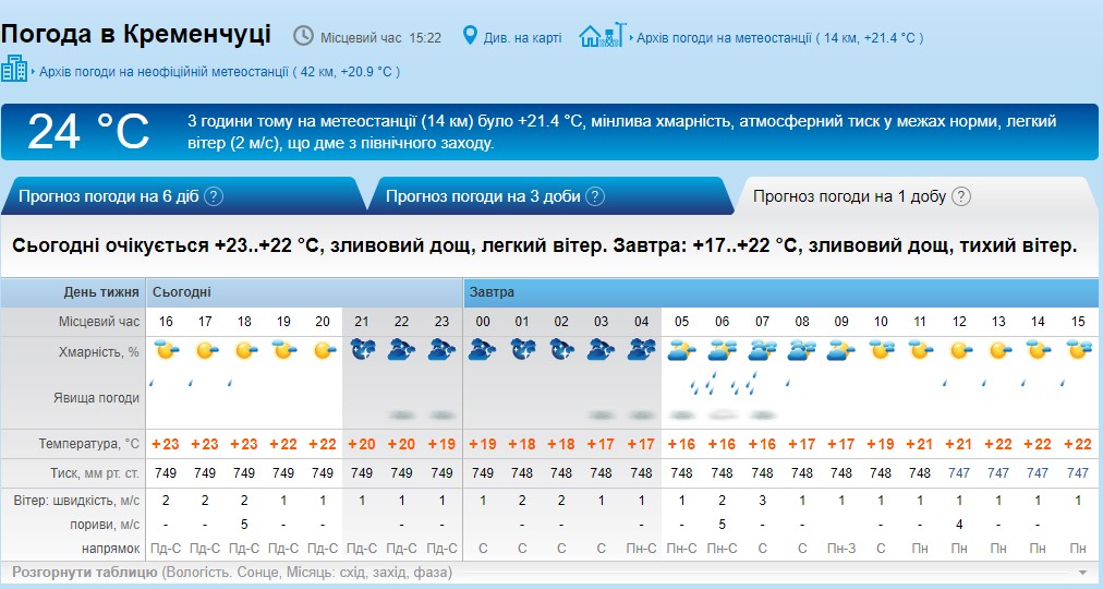 Судячи з прогнозу Rp5, у Кременчуці уже злива, яка триватиме до 18.00.