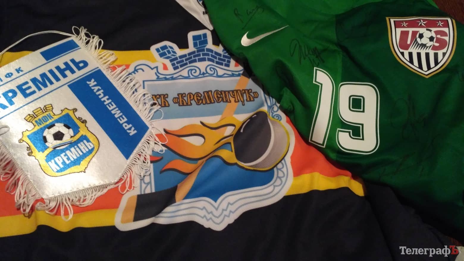 Футбольний клуб «Кремінь» надав м’яч, вимпел та дві футболки з автографами зірок збірної США. Заступник директора Вадим Маньковський дістав зі столу особисті ексклюзивні футболки збірної США – воротарську та польового гравця Едді Поупа.