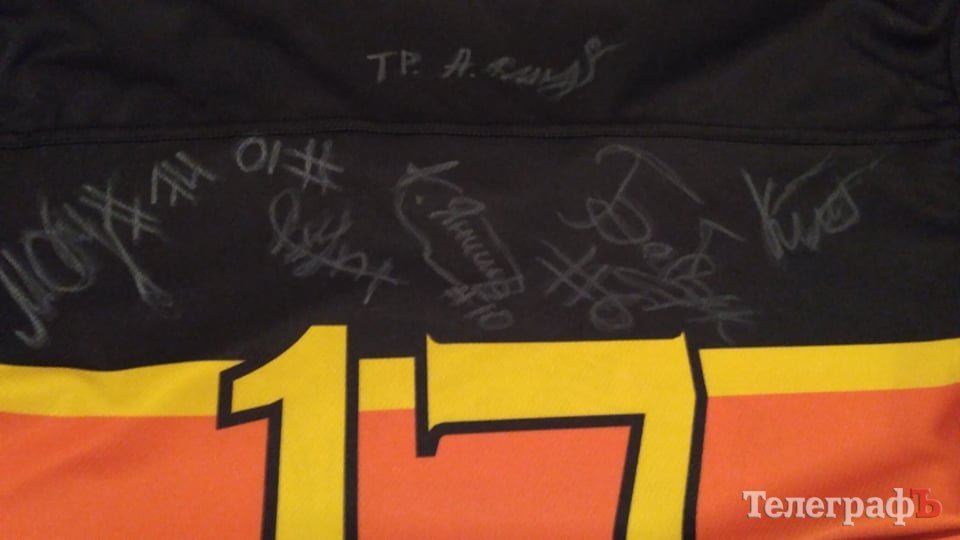 Хокейний клуб «Кременчук» надав светр, а мама одного з хокеїстів Ірина Брусліновська оббігала та зібрала підписи хокеїстів.