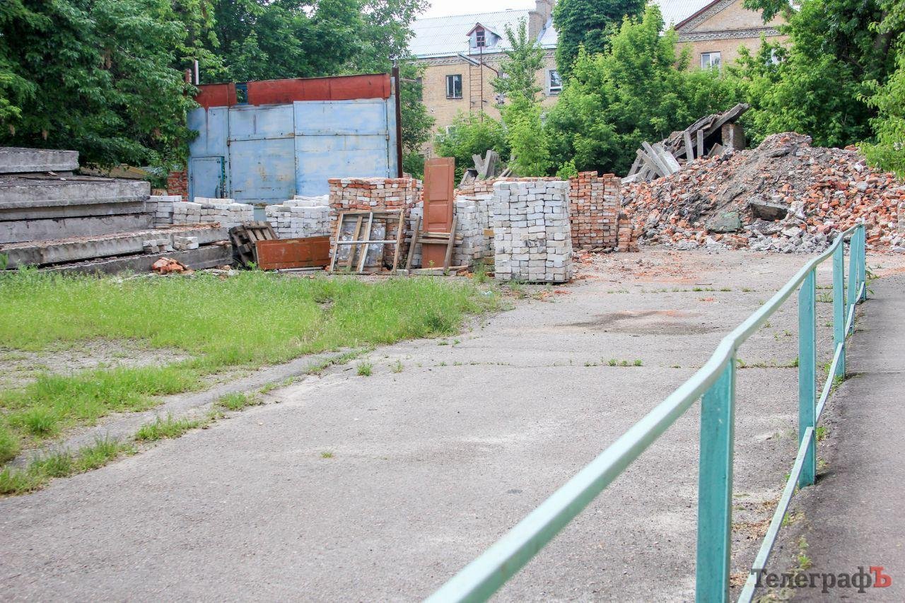 Тим часом у дворі, де розташований гуртожиток, вже розбирають гаражі, які колись теж належали УТОС та допоміжні будівлі. З усього видно, що ділянку вже готують під нову забудову.