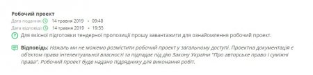 Відповідь: Нажаль ми не можемо розмістити робочий проект у загальному доступі. Проектна документація є об’єктом права інтелектуальної власності та підпадає під дію Закону України «Про авторське право і суміжні права». Робочий проект буде надано підряднику для виконання робіт».