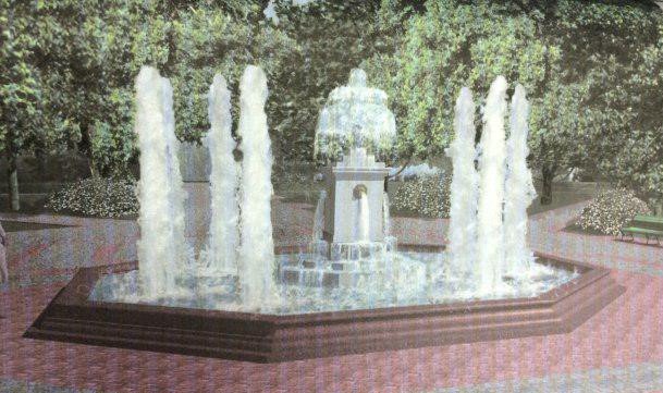 На місці центральної клумби планують встановити фонтан. Його відтворять за ескізами зодчого Івана Старова, який разом з англійським парковим будівничим Вільямом Гульдом у 1787 році були авторами проекту парку, який зараз ми знаємо як «Міський сад». Ось приблизно як він виглядатиме: