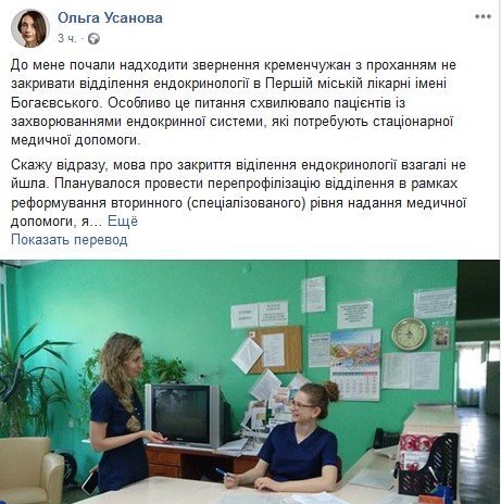 В конце апреля кременчужане узнали, что в первой больнице пройдет реорганизация, в результате которой сократят половину коек в эндокринологическом и гастроэнтерологическом отделениях – в каждом сократят по 15 коек, и столько же (по 15) оставят. Аргумент больничной администрации – часть коек стабильно пустует, нужно оптимизировать их количество и затраты на их содержание.