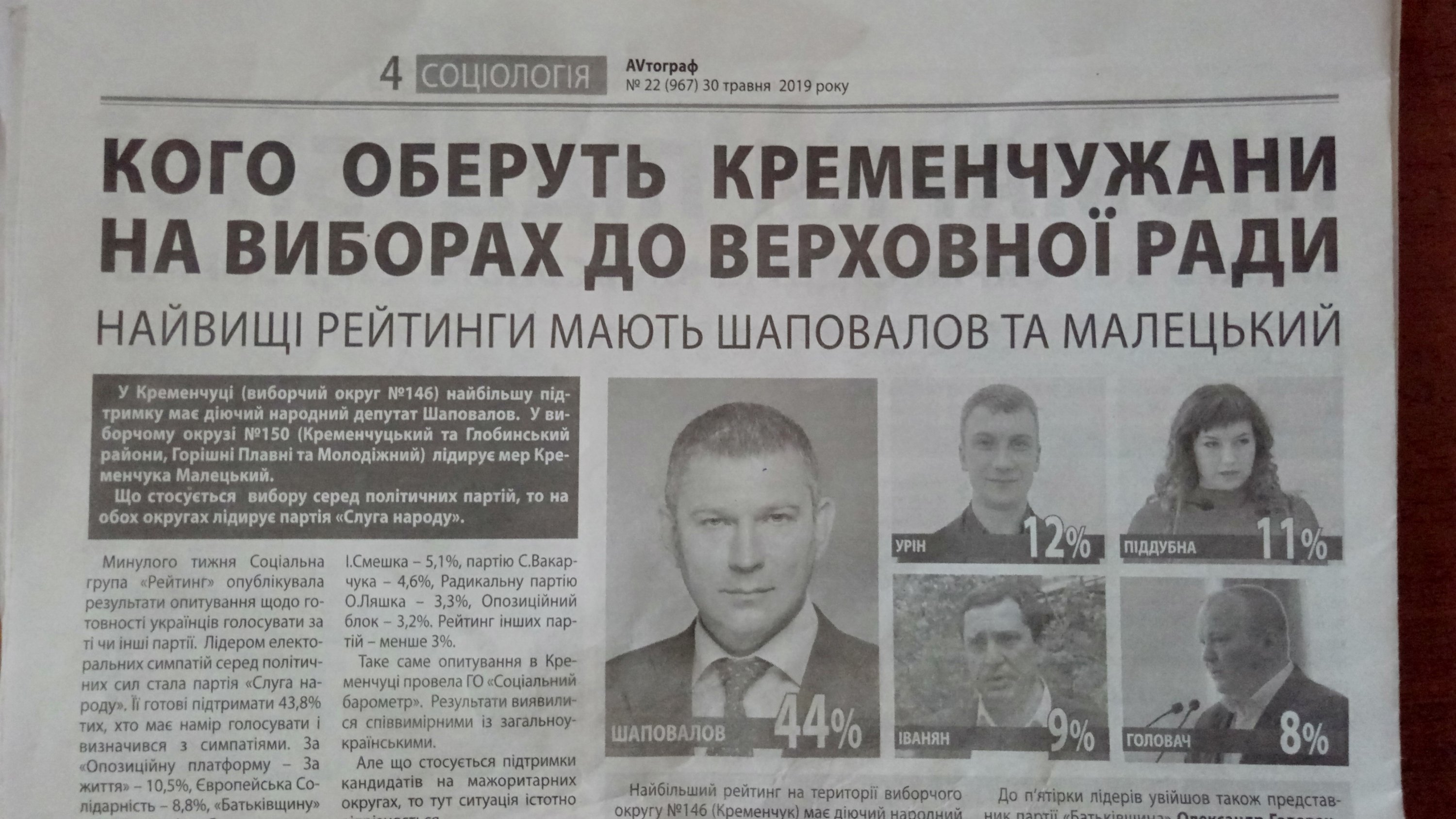 Он уже официально зарегистрировался кандидатом по 146-му Кременчугскому округу, у него мощная медийная поддержка в провласных СМИ и на его победу уже брошены значительные средства. По тому, как массировано развернулась кампания Шаповалова, понятно, что победа запланирована любой ценой.