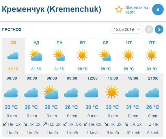 І тільки Gismeteo допускає можливість грози ввечері у неділю, 16 червня. Погода на вихідних буде здебільшого сонячною, а повітря прогріється до температури від +20°С до +31°С.