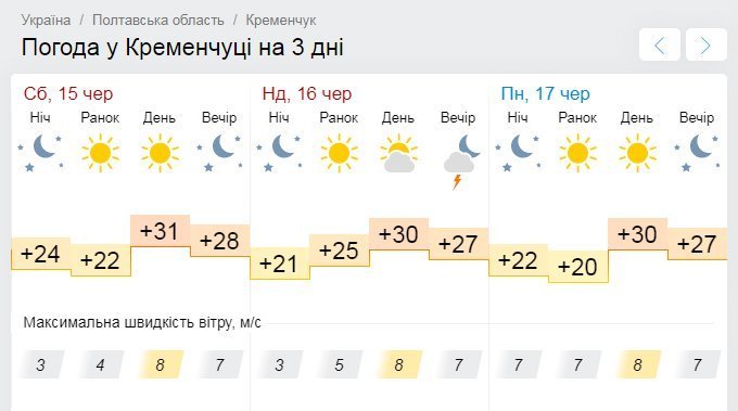 За даними синоптиків, на кременчужан чекають перші літні вихідні без дощів та гроз. Натомість у святковий триденний вікенд Кременчук накриє тотальна спека. Тому пийте більше води, а у полуденні години ховайтеся від палючих променів сонця.