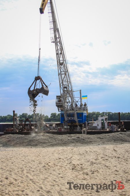 Работы по благоустройству и подсыпке пляжа на намытой косе в «Приднепровском», начались около двух недель назад.