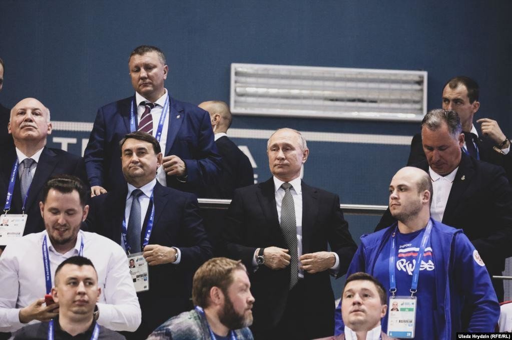 Президент Російської Федерації Володимир Путін слухав гімн України стоячи під час церемонії нагородження українського боксера з Полтави Олександра Хижняка на Європейських іграх в Мінську.