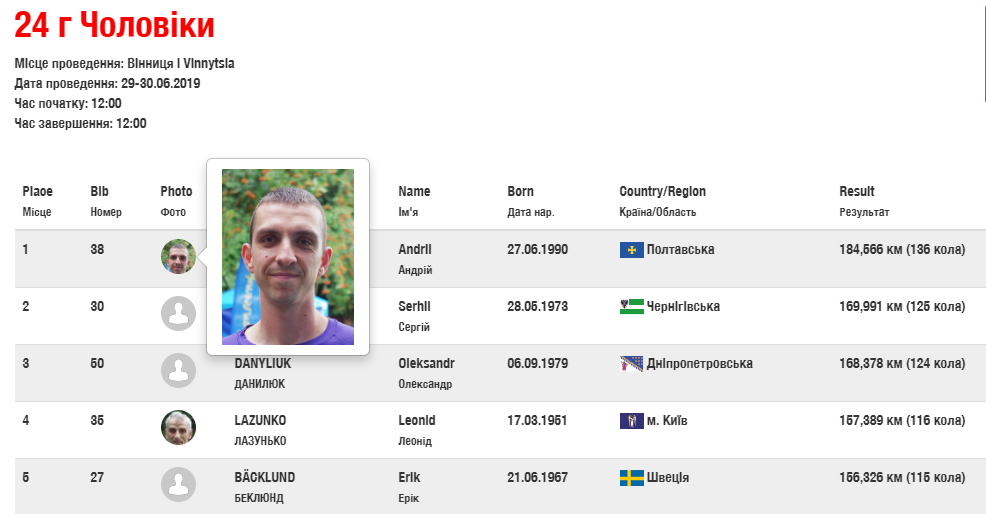 Кременчужанин Андрій Бялобржеський змагався у 24-годинному бігу. Наш спортсмен став кращим в цій категорії й випередив конкурентів майже на 20 км. Андрій за добу пробіг 184,566 км, а це 136 кола.