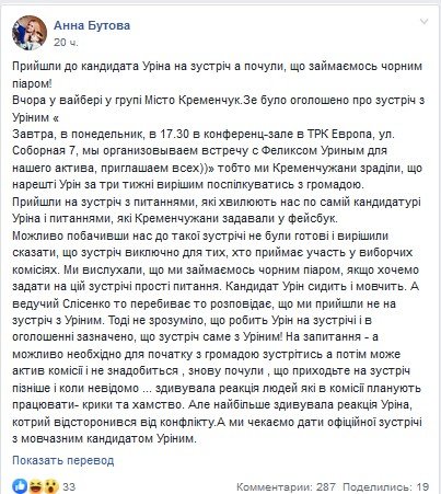 Приглашение – точнее, требование – прийти на стадион Кавунник разместил сегодня на своей странице в Фейсбук. Ответа Урина до сих пор нет.
