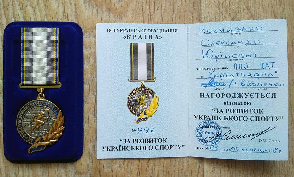 Перед змаганнями з народного жиму кременчуцького богатиря Олександра Невмиваку нагородили заслуженою нагородою.