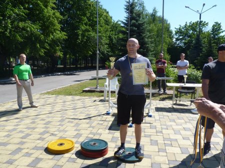 9 хлопців підіймали власну вагу. Спортсмени напередодні зважувалися й віджимали стільки - скільки їх власна вага. Переможцем народного жиму став В'ячеслав Мінтюк з результатом 27 повторень, який підняв вагу 75 кг. На другому місці Едуард Білик з результатом 23 повтори, а на третьому - Андрій Пазізін.