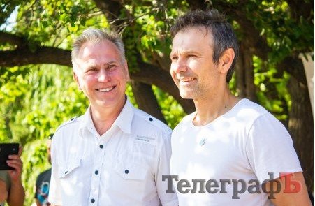 Святослав Вакарчук представил кременчужанам реального кандидата от партии "Голос" – Ростислава Зауральского (слева)