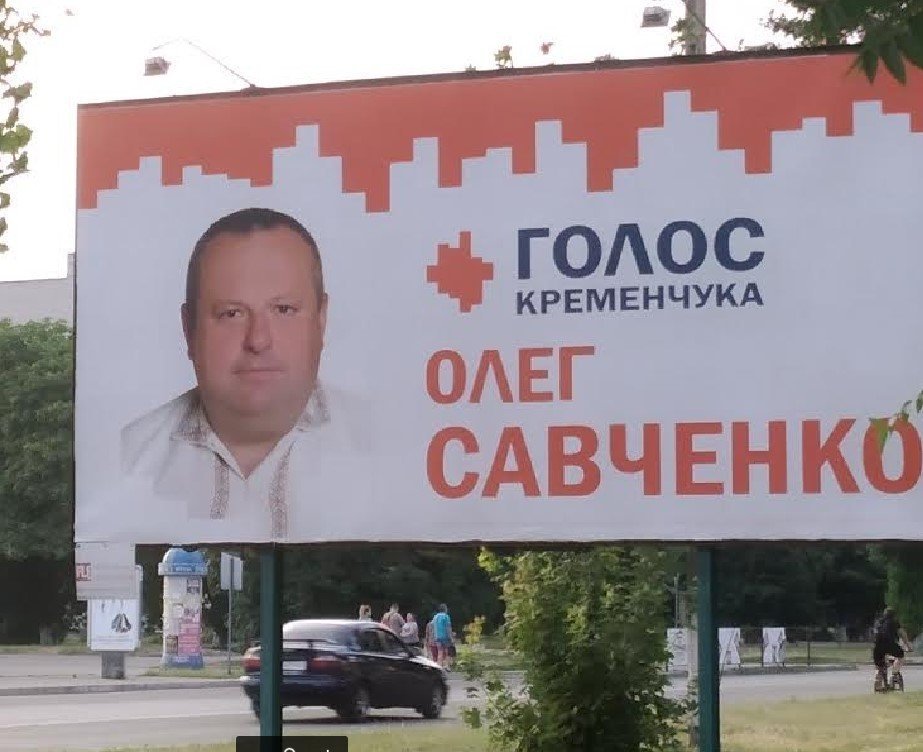 Олег Савченко баллотируется как самовыдвиженец. Но в своих агитационных материалах (газеты, борды) он самовольно использует название, корпоративные цвета и партийную символику партии Святослава Вакарчука «Голос».