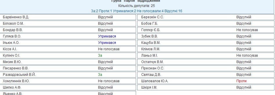 Группа «Відродження», в которой состоит Шаповалов, предпочла прогулять это заседание Верховной Рады. За кодекс проголосовали лишь два её члена. И один – Шаповалов – против.