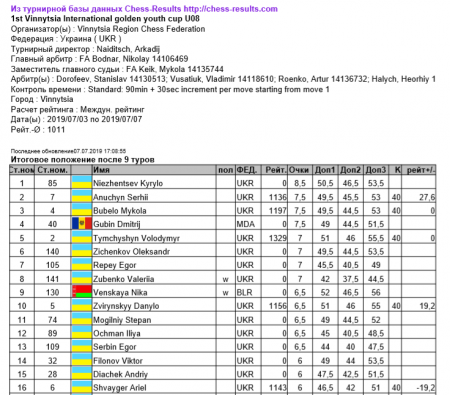 На следующий игровой день раздосадованный Егор за 15 минут в щепки разносит позицию второразрядника Антона Гуменюка. В последней партии турнира его соперник- перворазрядник из Португалии Максим Фарима, который стремясь к победе, пускается на маленькие хитрости в виде блестящих игрушек на игровом столе, которые должны отвлечь соперника от игры и которые исчезают лишь после обращения Егора к судье. Победив в последней встрече и набрав в итоге 6,5 очков наш участник делит 9-13 места в компании с чемпионом Украины Степаном Могильным из Киева, а побеждают в турнире киевлянин Кирил Нежинцев из шахматной школы Семенова, которого Егор победил на чемпионате в Одессе, второй - киевлянин Сергей Анучин, с которым опять же в Одессе Егор сыграл вничью и третий - винничанин Николай Бубелло.