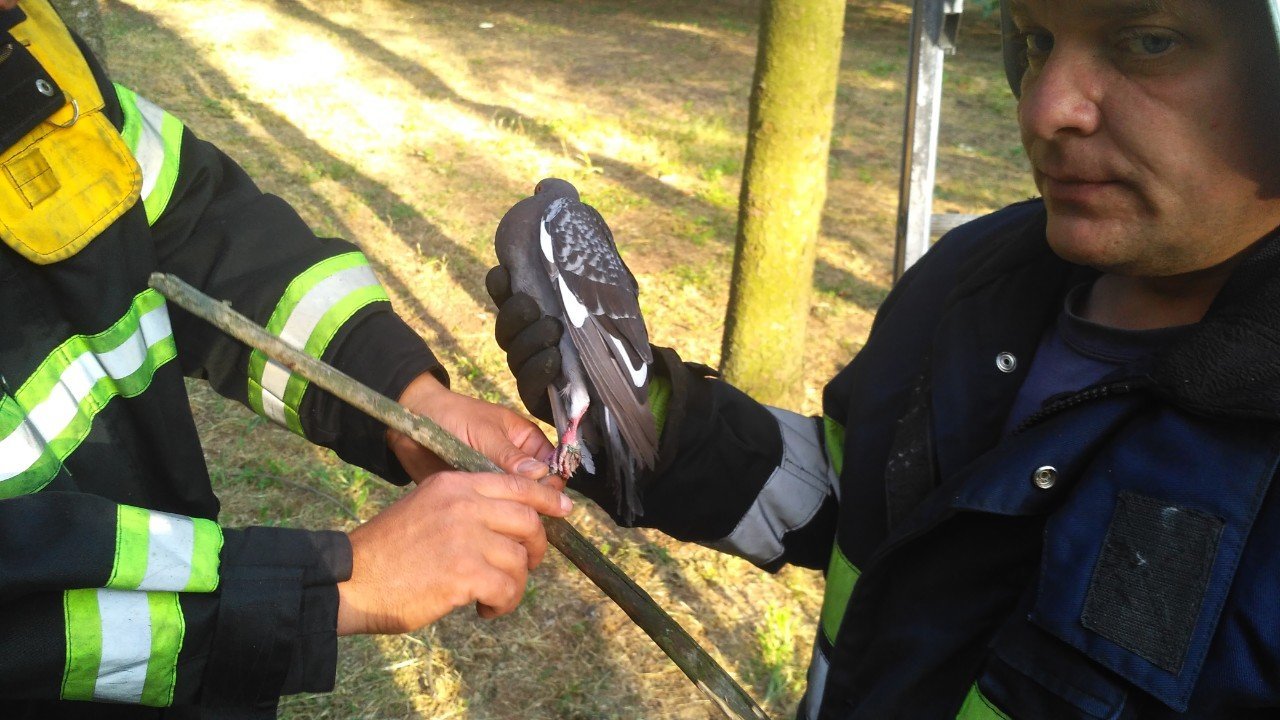 14 липня у Кременчуці рятувальники знімали з дерева голуба. Повідомлення про те, що у Придніпровському парку птах потребує допомоги надійшло на службу 101 о 18.31, а вся рятувальна операція тривала до 19.12.