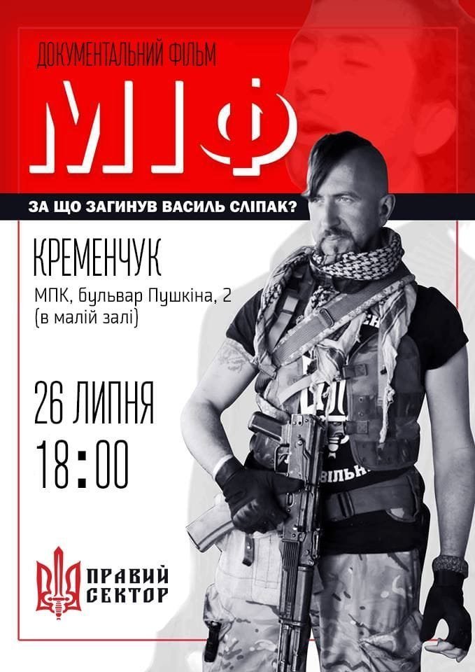 26 липня у Кременчуці презентують фільм «Міф» про відомого оперного співака Василя Сліпака, пісня якого лунала під обстрілами на Донбасі. Перегляд фільму безкоштовний і розпочнеться о 18.00 у малій залі Міського палацу культури.