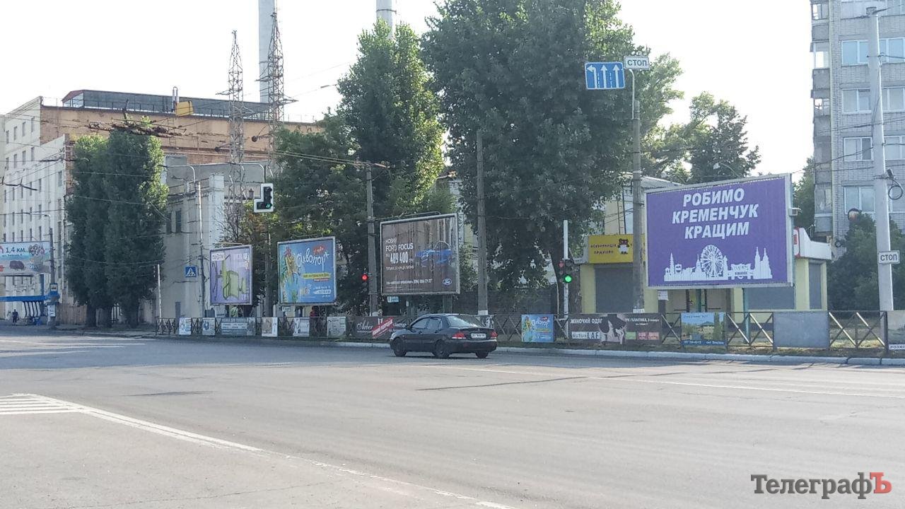 В день выборов, как и в «день тишины», в Кременчуге продолжают висеть лозунги кандидатов в нардепы. Больше всего бело-фиолетовых плакатов с намёком голосовать за определённого кандидата потому, что только с ним мы «Робимо Кременчук кращим».