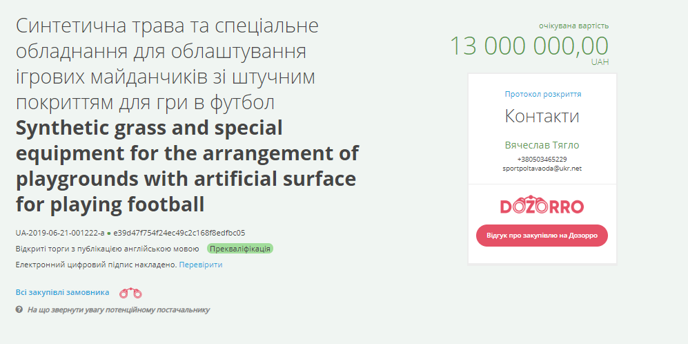 Тендер на штучне покриття для футбольних клубів «Ворскла» та «Кремінь» розпочалися 21 червня. 23 липня завершився прийом тендерних пропозицій, які надійшли з Полтави, Харкова та Дніпра. Загалом участь в тендері беруть 9 учасників. Початок аукціону – 28 серпня. Початкова очікувана вартість – 13 млн грн.