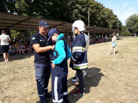 Працівники ДСНС розповіли відпочиваючим у дитячому таборі, як безпечно відпочивати на воді влітку, як діяти при виявленні вибухонебезпечного предмету, як запобігти пожежі у побуті. І недивлячись на зовсім юний вік, всі дітки вже з повною впевненістю гуртом відповідали "Ні" на питання рятувальників: "Чи можна запливати за буйки?", "Чи можна гратися сірниками?".