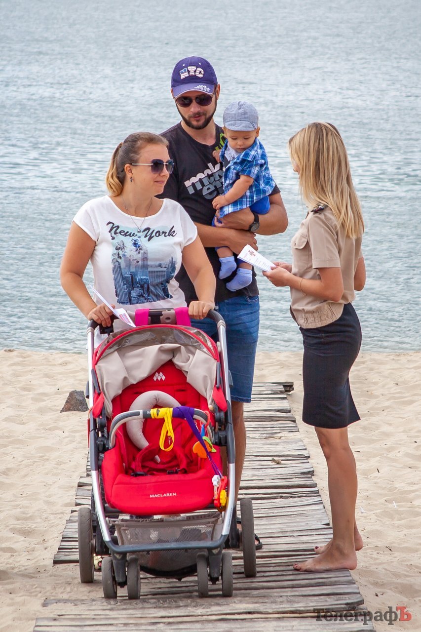 Спочатку ДСНСники разом з журналістами на катері пропливли вздовж центрального пляжу. Під час цього з гучномовця відпочивальникам нагадували про правила поводження на воді.